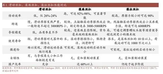 1.1 滾珠絲杠傳動效率最高,行星滾柱絲杠綜合性能較強